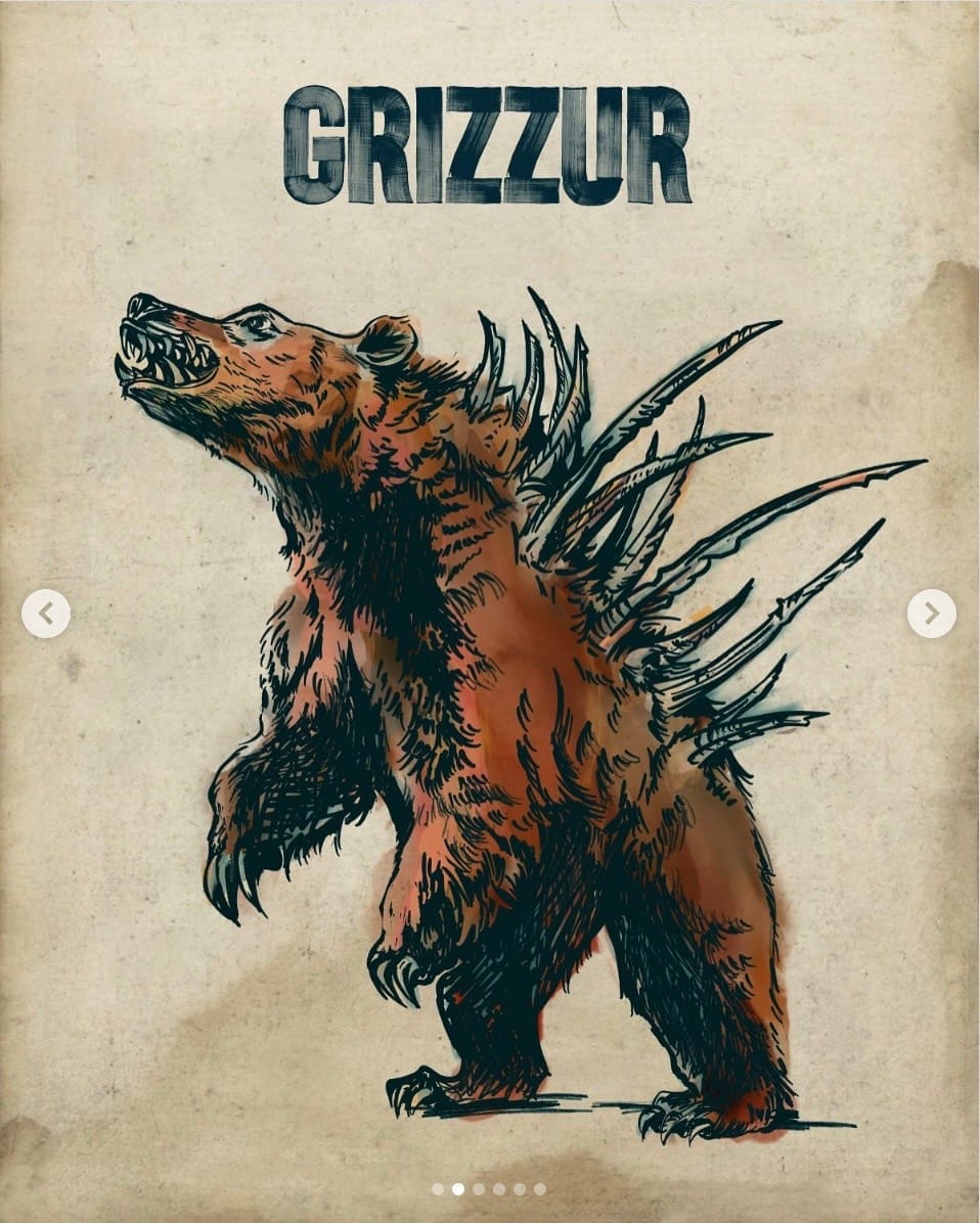 Grizzur. Long-snouted predators with large spikes along the back and cinnamon-colored fur. Often confused with bearwolves at a distance but significantly more dangerous in close combat.