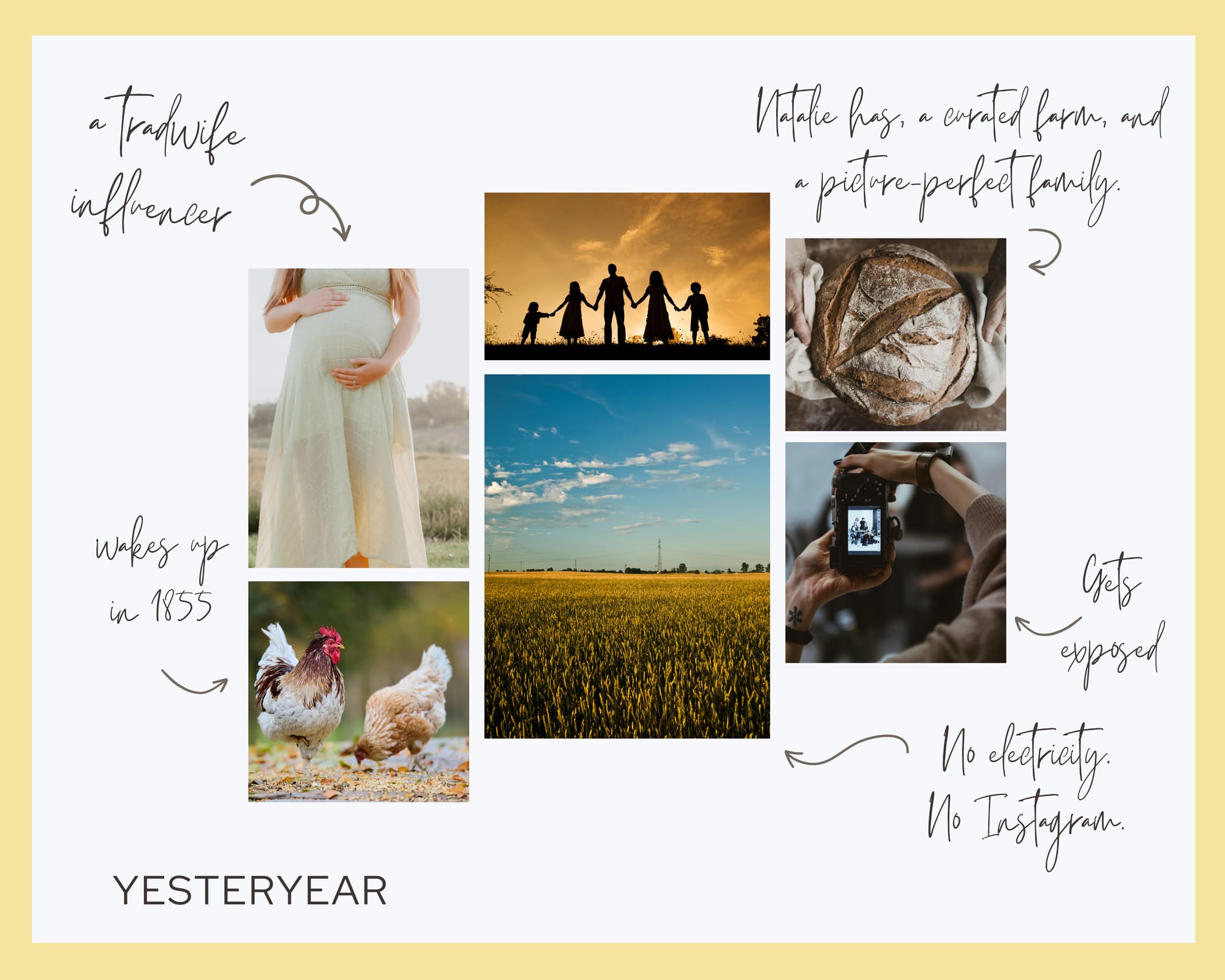 The hook is irresistible. A tradwife influencer waking up in the brutal reality of actual pioneer life is a clever, biting setup that taps into exactly the right cultural moment.